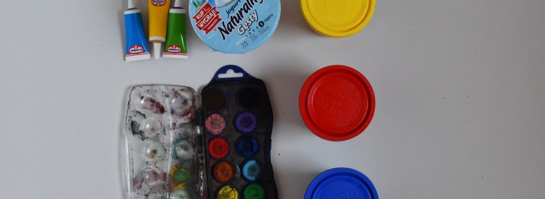 U mnie w domu materiały najbardziej brudzące znajdują się poza bezpośrednim zasięgiem dziecka. W przeciwnym razie dużo częściej musiałabym się liczyć z tym, że maluch forsuje malowanie wtedy gdy my chcę zrobić obiad. Podobnie jest z takimi, które daję dziecku ale ze względu na bezpieczeństwo nie chcę żeby je miało pod ręką np. nożyczki lub ostro zakończone kredki.